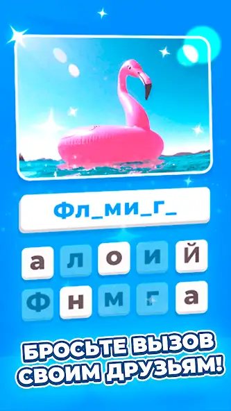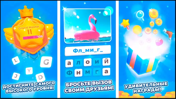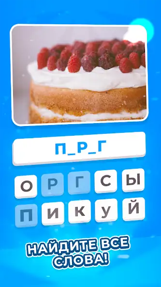 Cлово — головоломка о поиске, составлении понятий из букв по картинкам. Предстоит выбирать символы из списка предложенных знаков. Можно получать награды в виде усилений, подсказок, другие призы. Придется разгадывать слова на тематики фауны, еды и прочие. Неверно угаданные буквы выделяются красным цветом. Доступно начисление очков, отслеживание прогресса и получение достижений. Имеется функция паузы. Присутствуют однопользовательский и офлайн-режимы. Есть интерфейс на русском языке, реклама, светлая тема.