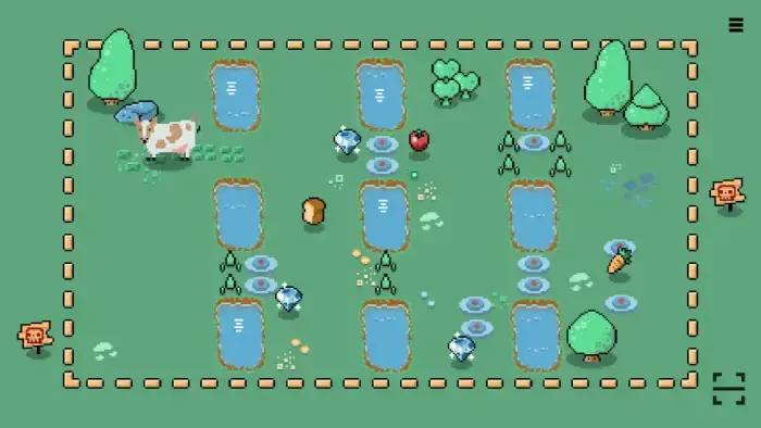 «Супер корова» — логическая головоломка с элементами приключения о собирании еды одноименным парнокопытным. Предстоит проходить уровни, обходить препятствия, подбирать кристаллы. Ограничения по времени отсутствуют. Функционирует без доступа к Сети. Характеризуется пиксельной двухмерной графикой. Имеет русскоязычный интерфейс. Присутствует музыкальное сопровождение. Позволяет сохранять игровой процесс с помощью облачного хранилища при наличии интернет-соединения и авторизации в Google Play Games. Есть реклама.