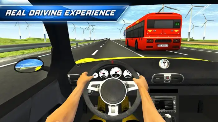 Racing in City: Car Driving — симулятор автомобиля с элементами гонки об управлении транспортными средствами в условиях бесконечного дорожного трафика. Предстоит ездить по дорогам среди прочих видов транспорта, например автобусов, легковых машин, внедорожников. За достижения начисляются трофеи — виртуальные кубки, подарки. Доступен вид от первого лица. Можно получать очки за объезды, обгоны другого транспорта; персонализировать автомобили.