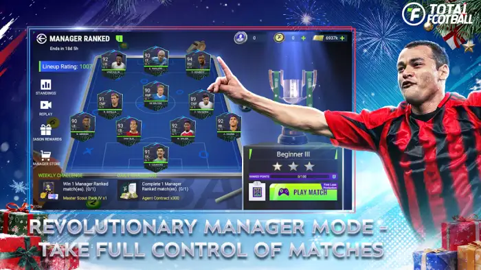 Total Football — симулятор футбола о создании команды, участии в матчах с целью стать чемпионом. Можно играть на мировых стадионах, присоединяться к мероприятиям, испытывать игровые режимы, продвигаться по карьерной лестнице. Придется разрабатывать дизайн значка команды, униформы, флага, баннеров. Доступен выбор футболистов из свыше 4000 игроков. Есть заработок виртуальных денежных средств, их использование для приобретения спортсменов.
